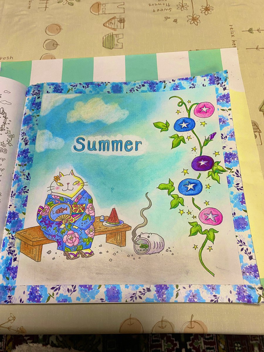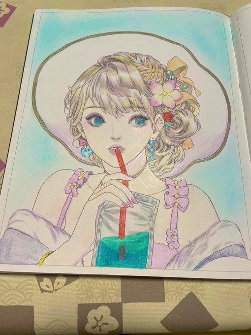 放置していた塗り絵完成しました! リスとひまわりの麦わら帽子です👒 残暑が厳しいですが夏もそろそろ終わりが近づいてきましたね…! 使用色鉛筆はコーリン色鉛筆、色辞典です。 #大人の塗り絵 #どうぶつたちの花時間 #色鉛筆