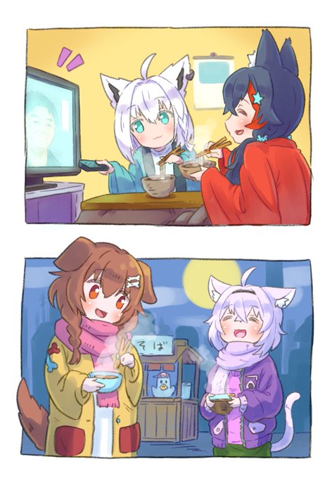 おそばゲマズ🦊🐺🐱🐶 今年も楽しく描き続けられました! 来年もよろしくお願いいたします🙏 #絵フブキ #みおーん絵 #絵かゆ #できたてころね