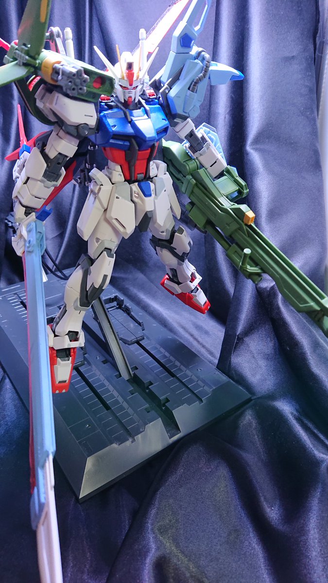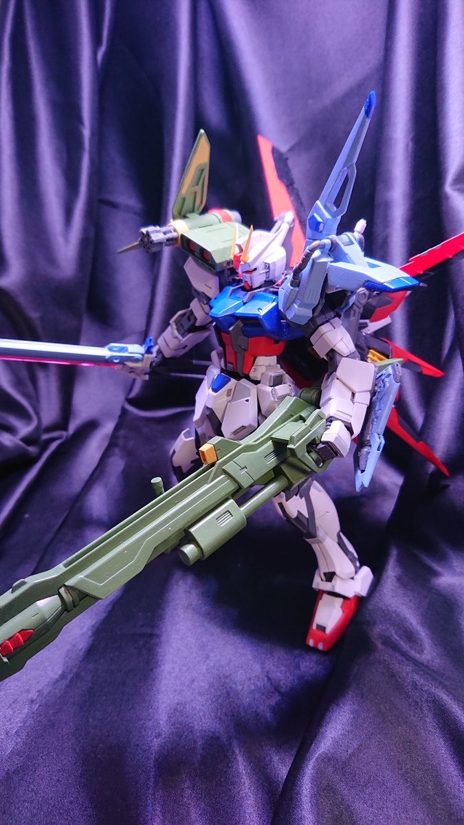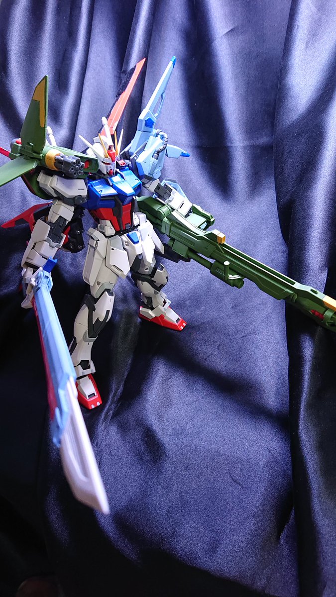 #ガンプラの画像を貼るとRTされると聞いて #ガンプラ好きと繋がりたい パーフェクトストライク完成しました。 大体、ファレホで筆塗装で仕上げてます。 所々にグレーを挿して、なんちゃってRG風にしてみました