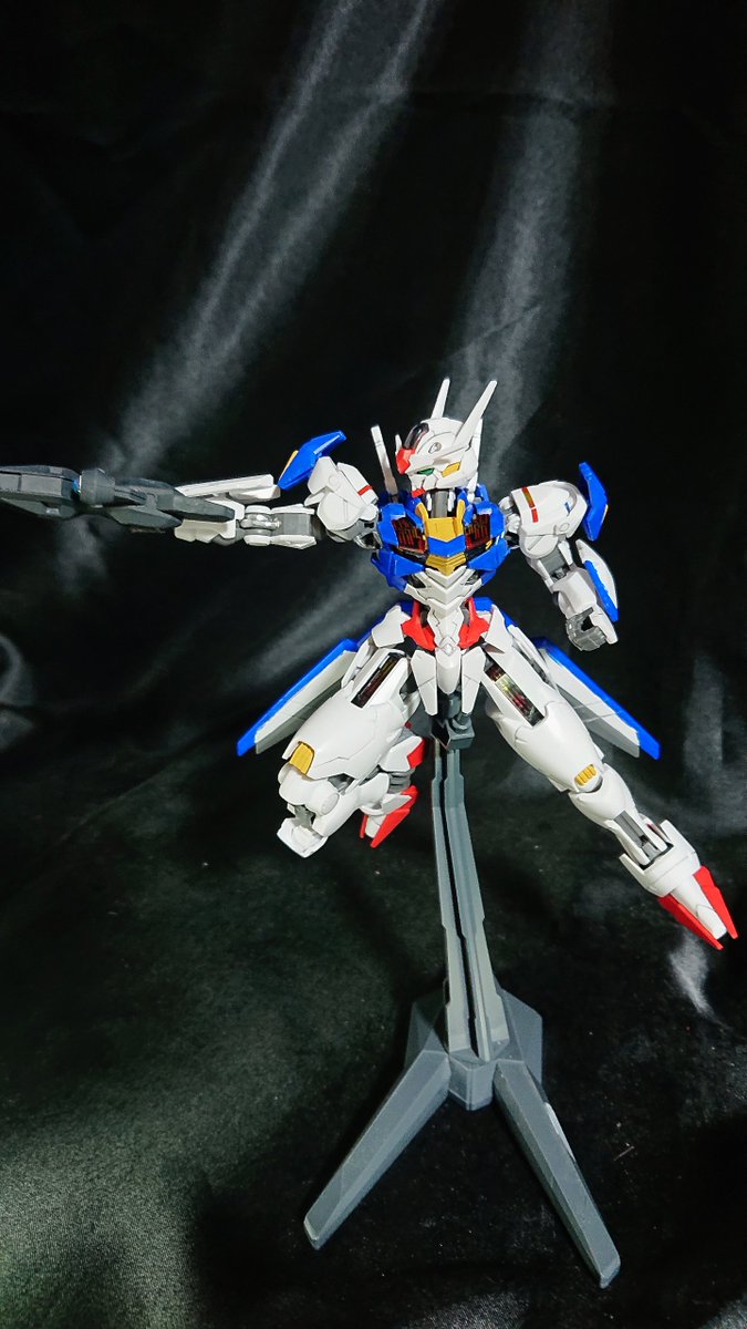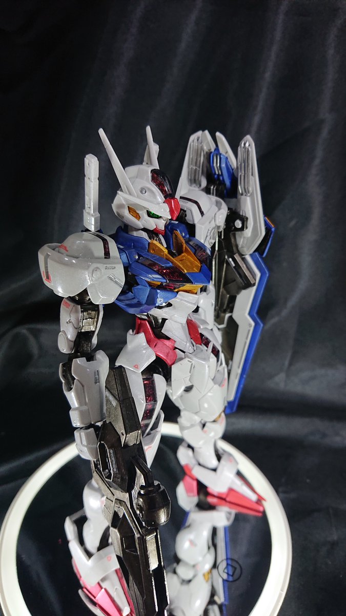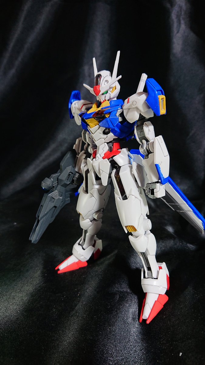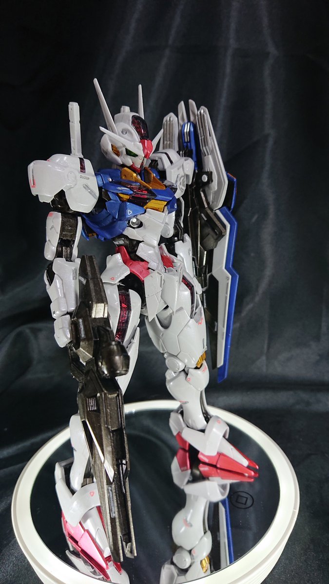 ガンダムエアリアルこれにて完成。 足の間接を組み換えて少しだけ延長作業をした以外はストレートに素組して、塗装してます。ここ最近ずっと模活しすぎていたので、少し一休みしてから 再開します。 #ガンプラの画像を貼るとRTされると聞いて #水星の魔女
