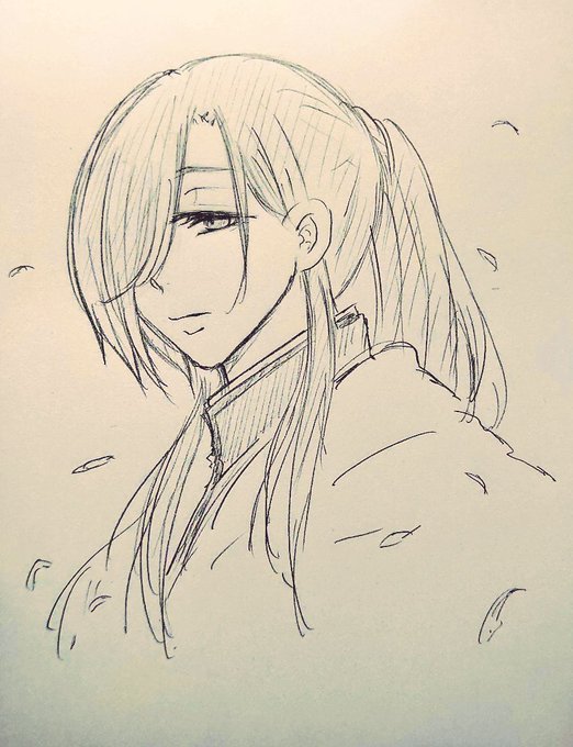 2 14 息抜きに描いた落書き。いつぞやのアンケートで一番になってたから古今さん。本丸によっては、良い笑顔で暮らしてたりするのかなぁ 20/09/16 23:15