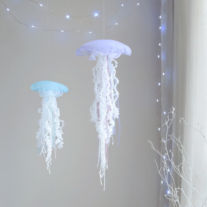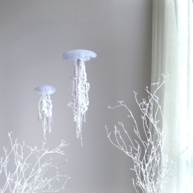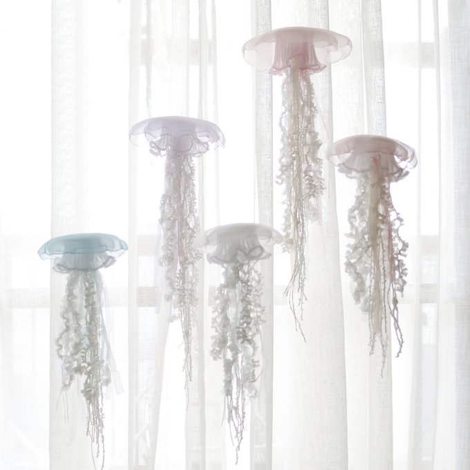 12/19まで!【送料無料&ラッピング無料】 ふわふわお部屋を漂うクラゲのモビールM・Sサイズセット ハンドメイドでひとつひとつ丁寧にお作りしています。 幻想的なクラゲと一緒にステキな冬をお過ごしください♪ yuragiweb.com