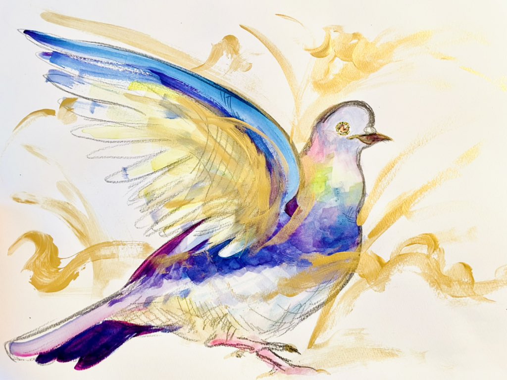 みなさま、こんにちは☺️ 鳩ってね、2羽寄り合うと 翼がぶつからないように 片方の鳩が、 相手の方に翼をかけるんです。 そっと肩を抱くように。 ああ平和...なんて平和!🥰 今日もごきげんよう✨✨ #おは戦40406as 🌊 #鳩 #illustration #水彩画 #イラスト