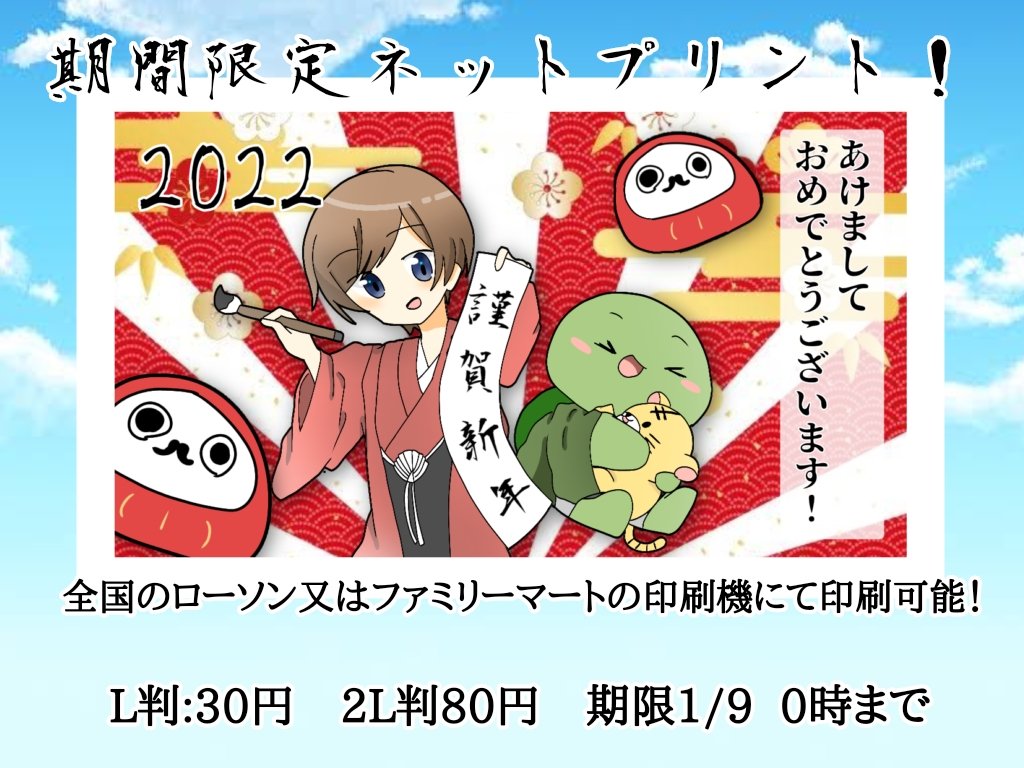 ☆期間限定ネットプリント開始☆ ※再ツイート🙇💦 年賀状ということで!🐇🐢 全国のローソン又はファミリーマートの印刷機にて、ブロマイドが印刷できます! こちらのユーザー番号を入力してください! 【G2Z2C4K5ZL】 料金や期間は画像を見ていただけると幸いです!! #年賀状イラスト