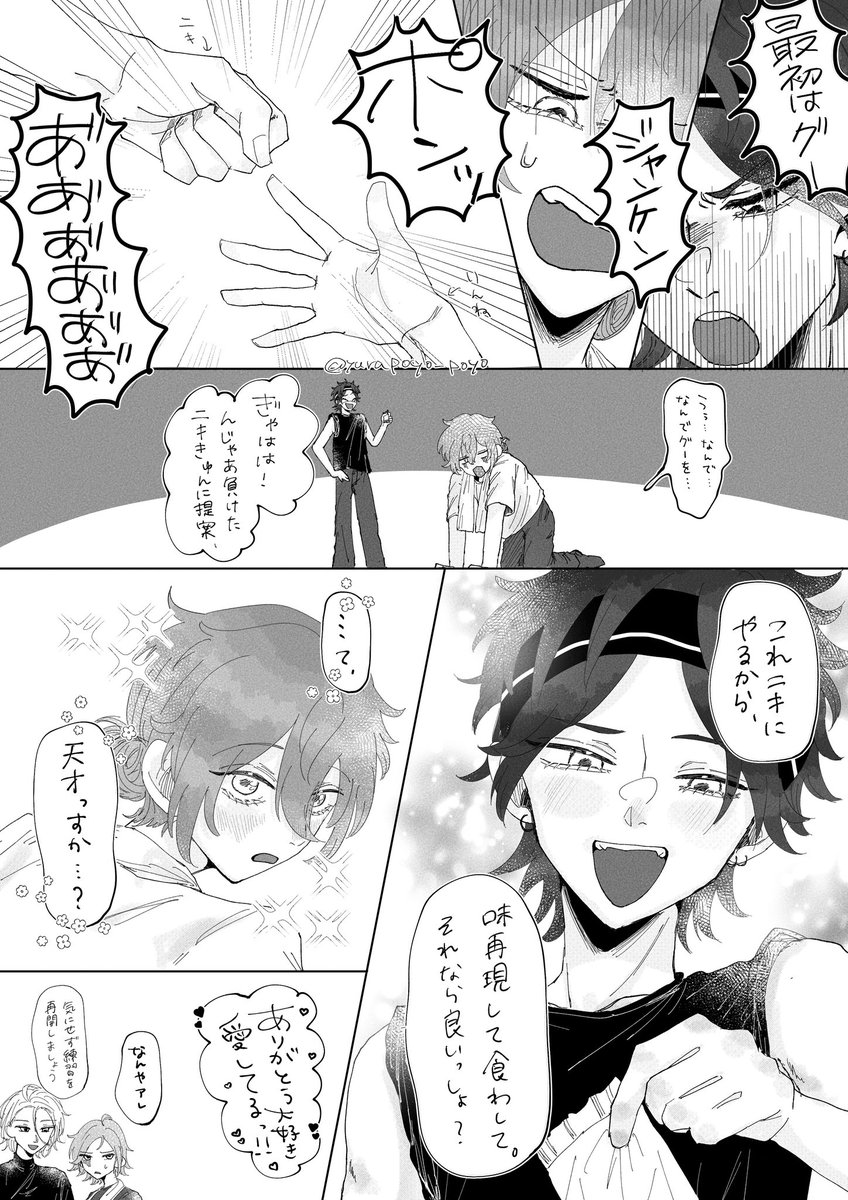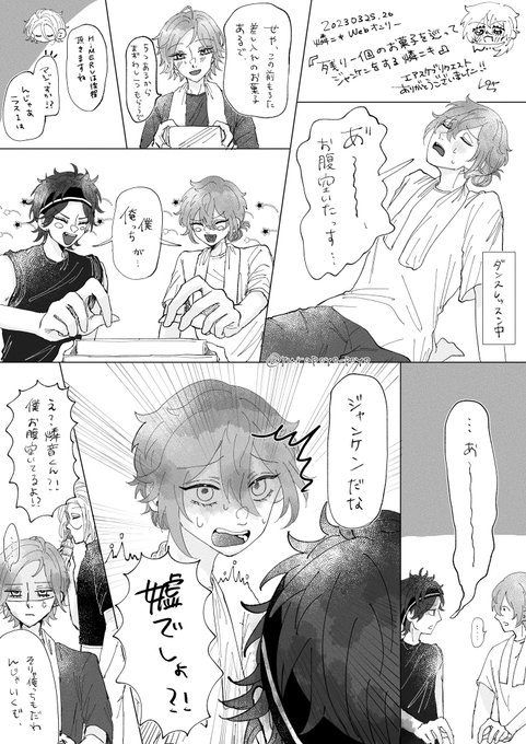 20 54 残り一個のお菓子を巡ってジャンケンをする燐ニキ(エアスケブ) リクエストありがとうございました‼️ 🎰 #ハニキス_webオンリー 🍳 23/03/29 12:16