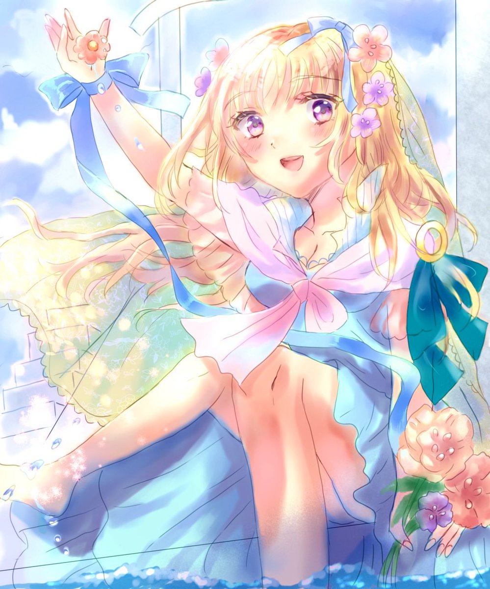 水の祝祭の少女 💐 神聖な雰囲気になりましたが、 元気に可愛く描けたと思います。 #イラスト #創作イラスト #女の子イラスト #絵描きさんと繋がりたい #夏の創作クラスタフォロー祭り #絵柄が好みって人がいればいいなぁ
