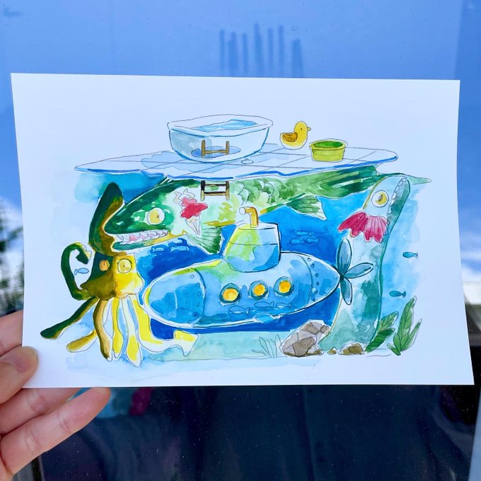 Long weekendだけど 天気がパッとしないですなー! まるで「崖の上のポニョ」を見たくなるような天気ですね!!! よし!見よっ! #inktober2021 Day 25 / water