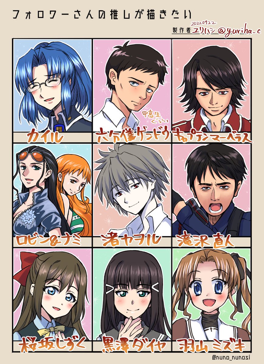 #フォロワーさんの推しが描きたい 描けました!!やったー!!! 色んな作品のキャラが描けて大変勉強になり楽しかったです✍️✨ ほぼ初描き+原作未見キャラも多いですがパッと見雰囲気出てます様に🙏 リプいただいた皆様ありがとうございました!!!!!