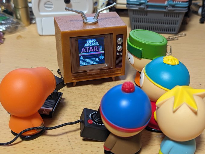 #夜のフィギュア撮影会 お題「アメリカ」 #おもちゃ撮影会 お題「アメリカ3orアリス」 アメリカから発売した世界初のテレビゲーム機アタリ2600が遊べるTINY ARCADEシリーズ楽しいよ。