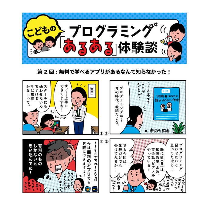 #イラストレーターズ通信 に #イラスト を追加しました! illustrators.jp/profile.php?id… 月イチ連載『こどものプログラミング「あるある」体験談』(#マイナビニュース) バナーデザインと導入の #4コマ漫画 を担当しています! #イラストレーター #シンプルイラスト #ゆるいイラスト #バナー #デザイン