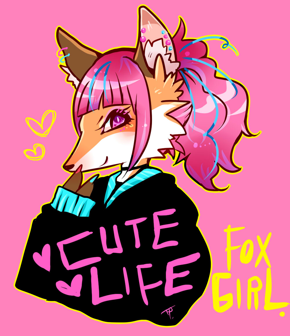 カワイイが大好き💖なガーリーアカギツネちゃん。 ピンク×水色って可愛い。 #絵描きさんと繫がりたい #絵柄が好みって人がいたらいいなぁ #無名絵師なので私をフォローして有名にしてください #創作イラ #狐 #獣人