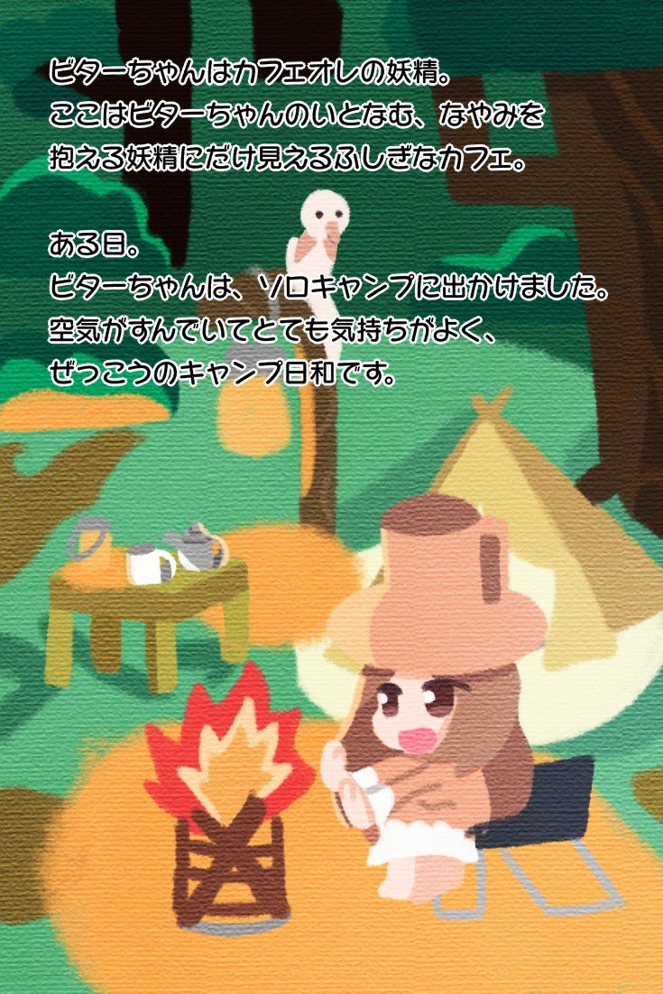 4 11 【4ページ絵本】ビターちゃんの日常 ソロキャンプ ある日、ソロキャンプに出かけたビターちゃん🏕 ミルクさんにお使いを頼んだら違うものを拾ってきてしまい。。。 #絵本 #絵本作家 #絵描き人 22/07/06 12:44