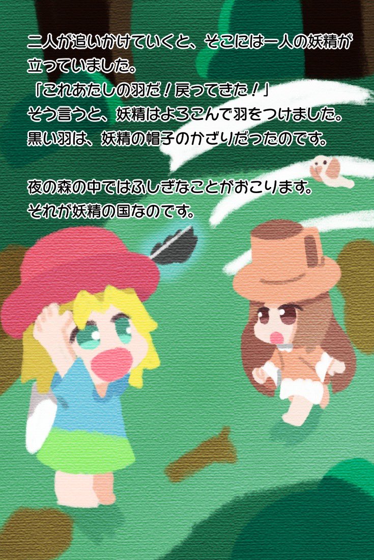 5 11 【4ページ絵本】ビターちゃんの日常 ブランコ ふと思いついて作ってみた作品。 妖精の国はどんどん設定が増えていて、収拾つくのかしら?笑笑 #絵本 #絵本作家 #絵描き人 22/07/20 12:27