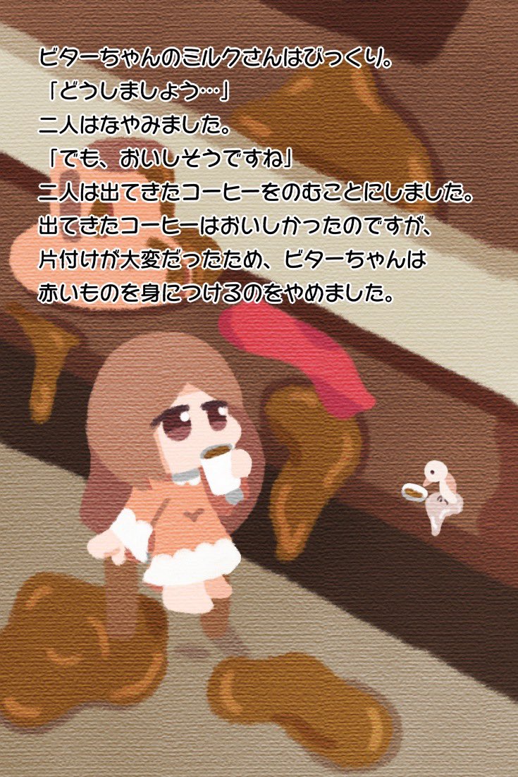 6 36 今日はカフェオレの日だけど、同時にビターちゃんの誕生日なのです。 なので、ビターちゃんにケーキをあげました。 #ビターちゃん生誕祭2022 #絵描きさんと繋がりたい #カフェオレの日 22/08/01 16:04