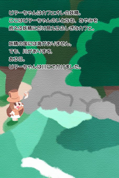 【4ページ絵本】ビターちゃんの日常 川遊び 妖精の国には海がありません。 ですが、川があります。 川遊びに出かけたビターちゃん。 そこで出会ったものとは。。。? #絵本 #絵本作家 #絵描き人