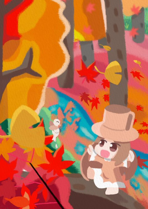 3 14 【紅葉樹の散歩】 ビターちゃんの四季の連作「秋」の絵。 この連作は、もう一つのテーマに「散歩」があります。 ビターちゃんが楽しく過ごしている姿が可愛い! #イラスト #絵本作家 22/10/01 12:00