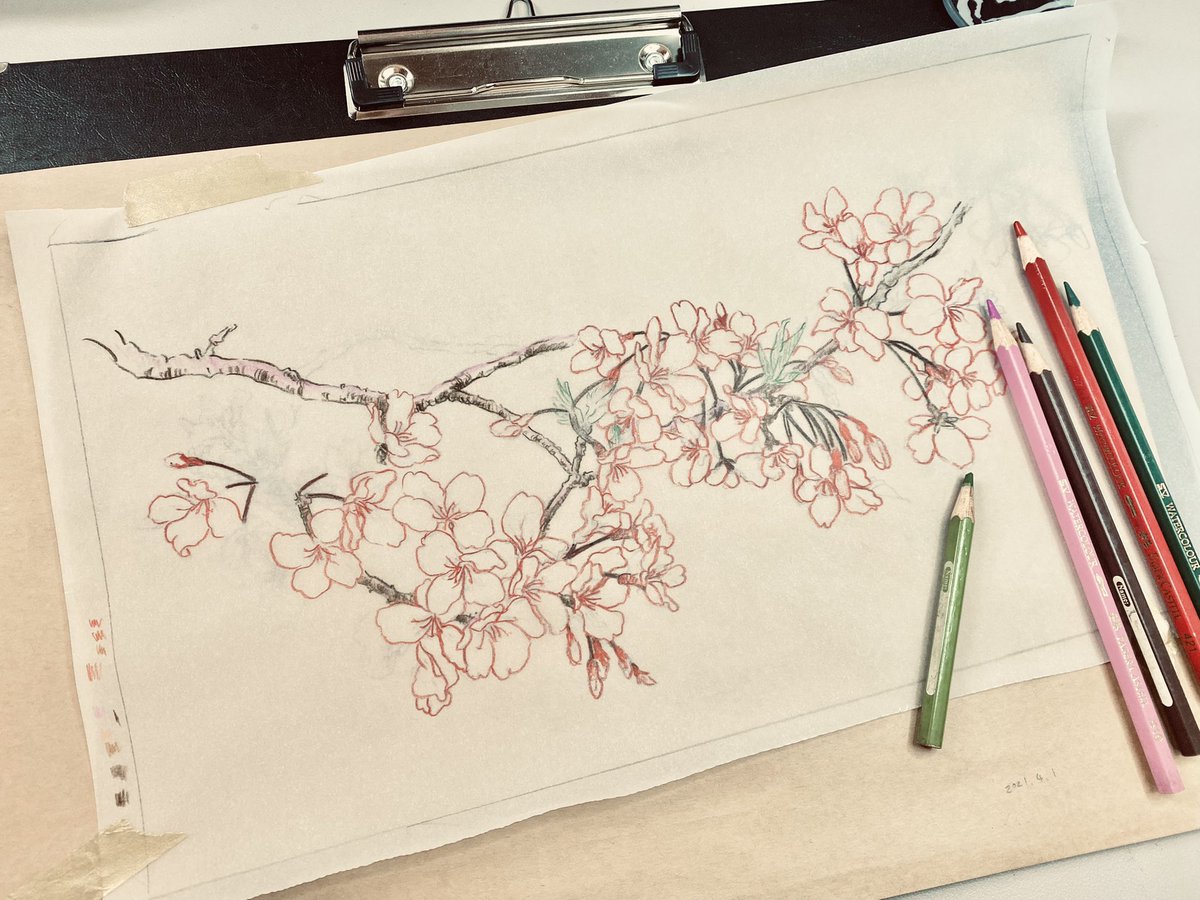 桜の墨彩画描くためのエスキース トレペで構図練り #日本画 #イラスト #アート #スケッチ #桜 #色鉛筆 #エスキース #イラスト好きな人と繋がりたい #絵描きさんと繋がりたい #japanesepainting #art #inkpainting