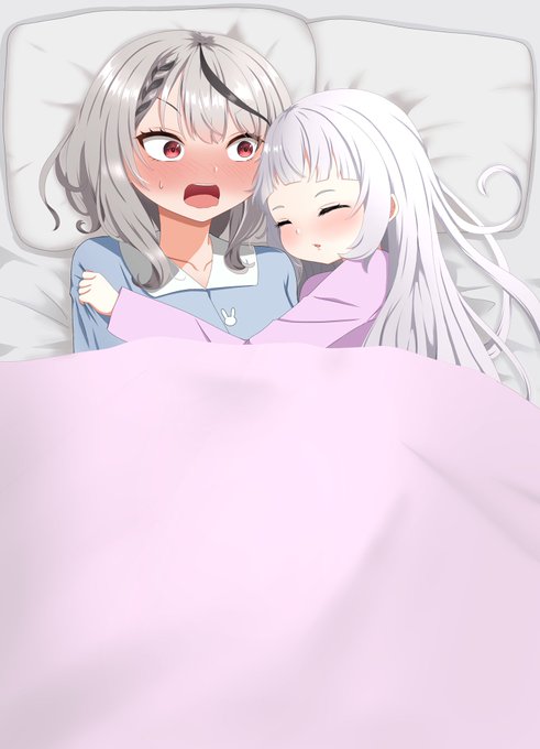 お泊まりして起きたらシオン先輩に抱きしめられていた沙花叉🎣🌙 #さかまた飼育日記 #シオンの書物