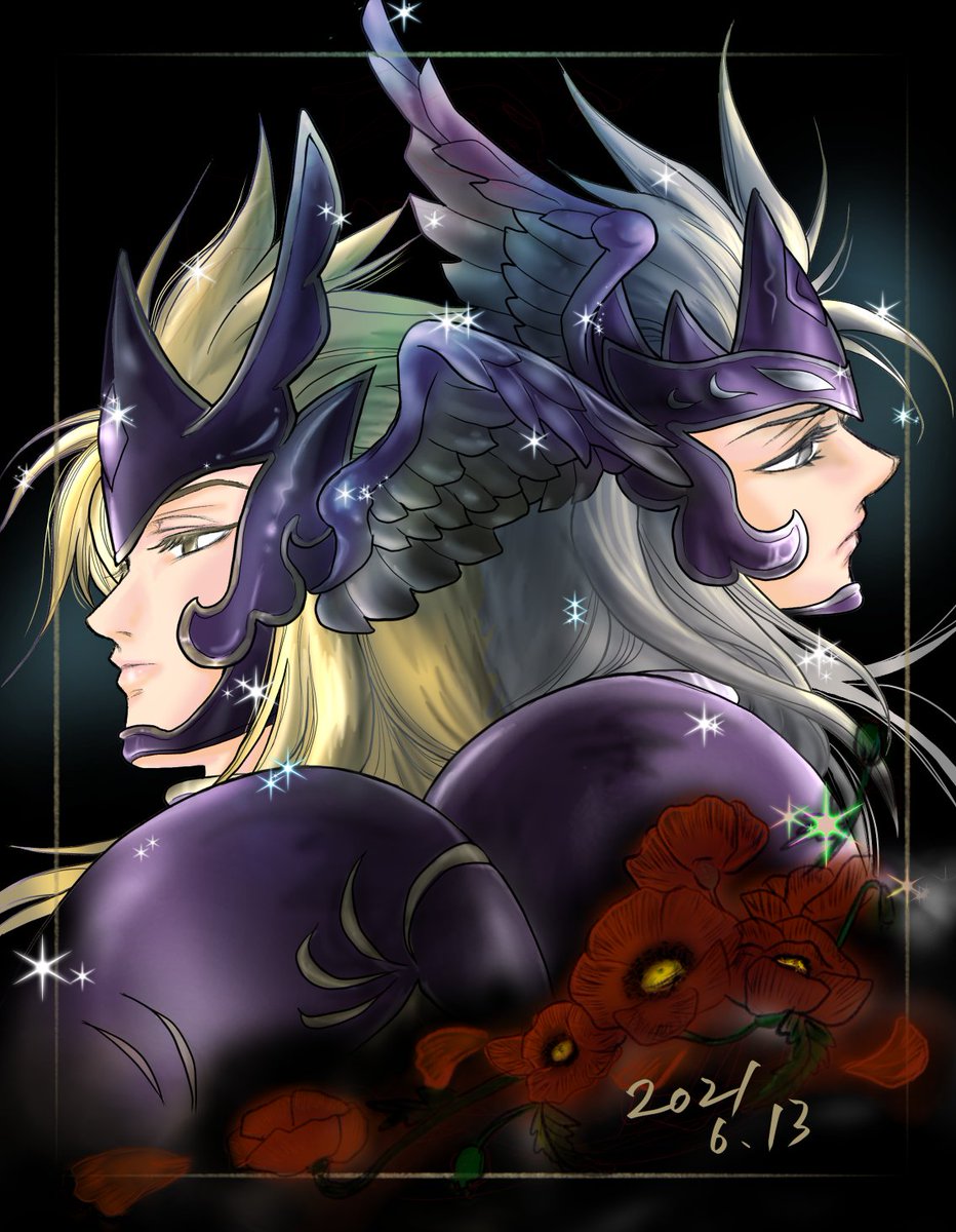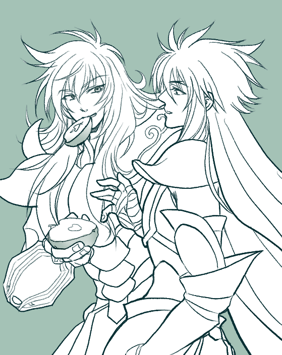 一応LC風を意識した二柱にて。 星矢は神を打倒する物語なわけですが、その面白さも魅力ある神々あってのものだよなあと思います。 マニゴルド戦、ハクレイ戦は熱いぞ!! #双子神タナトス・ヒュプノス生誕祭2021 #双子神生誕祭2021
