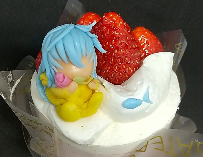 とりあえず推しケーキだけ用意!! なんかソフトキャンディの知育菓子を見つけたら中身が超アルバちゃんカラーな構成で、思わず……😇 なお味はグレープとソーダなので🍰には死ぬほど合わない(笑) #魚座のアルバフィカ生誕祭2021
