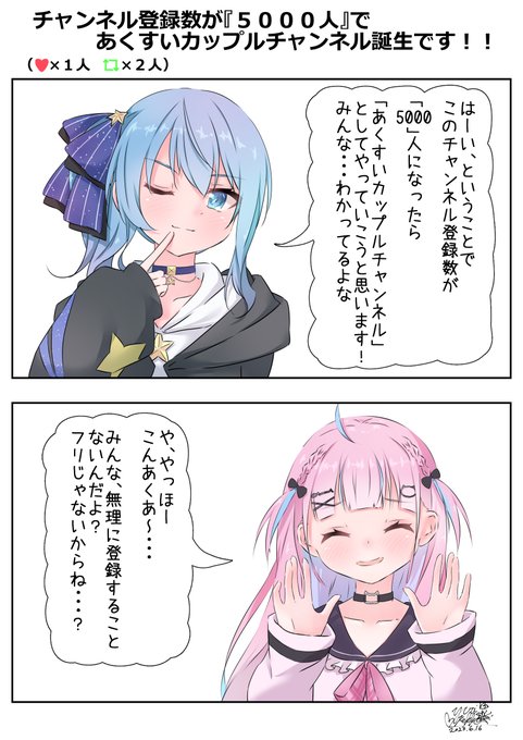 第3弾! 登録者数5000人であくすいカップルチャンネル誕生!? 期限は 6/17 23:59 までです! いいね=1人 リツイート=2人 #ホロライブ #ほしまちぎゃらりー #あくあーと