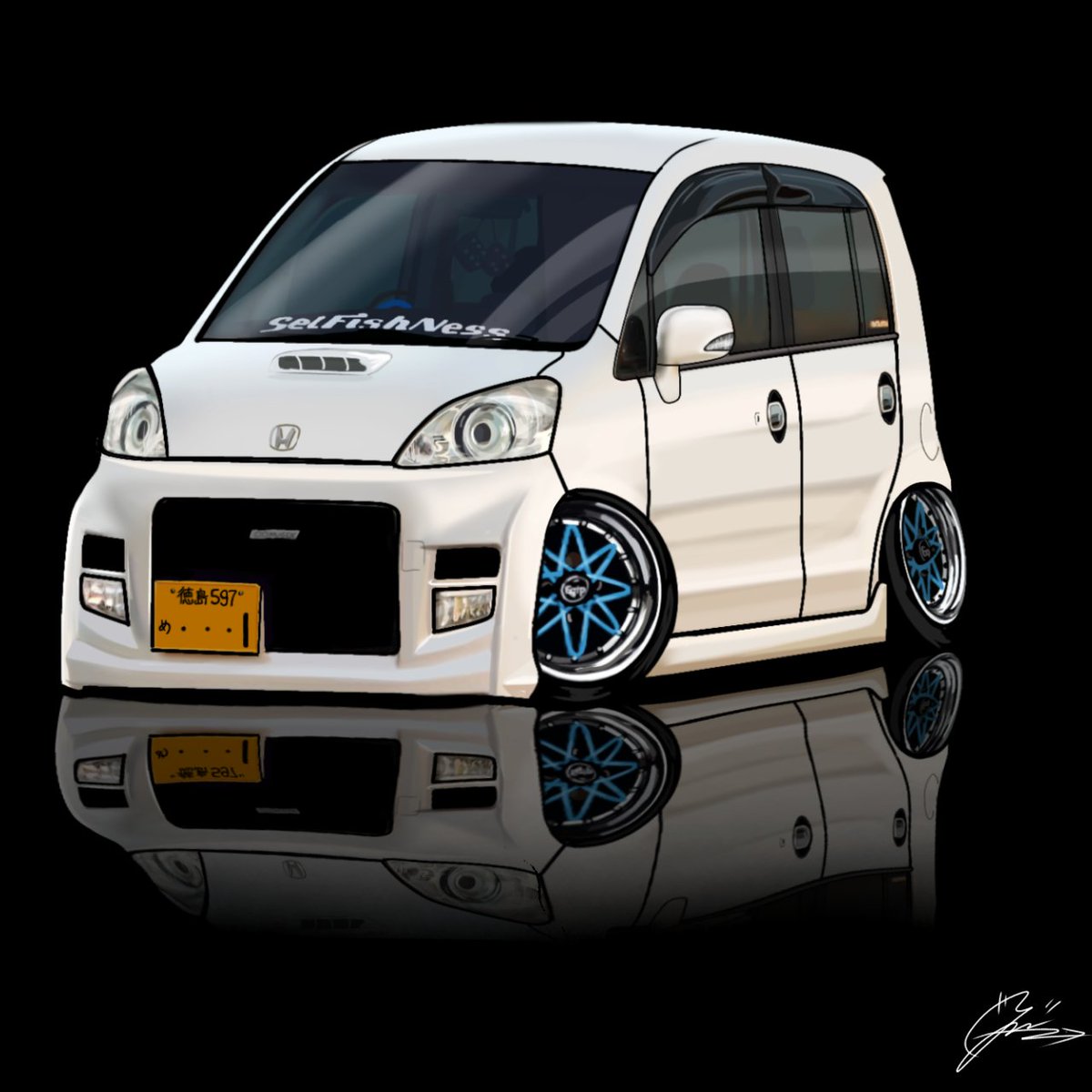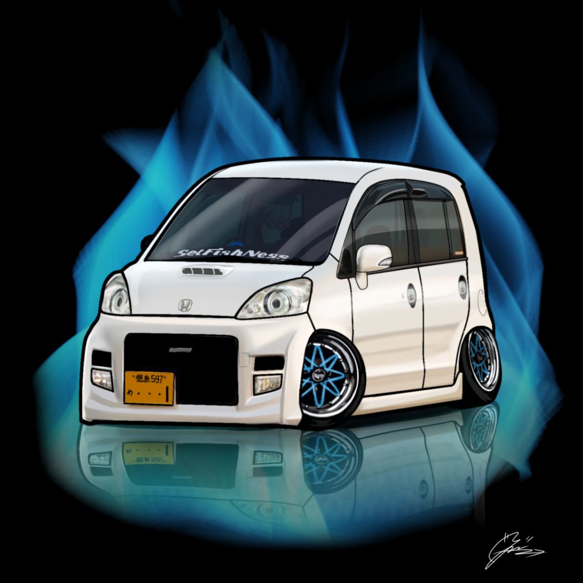 けーちゃんさん(@keicha0712)のお車 デフォルメにて描かせて頂きました!! ご依頼ありがとうございました! 箱車たのしいェ!!!!!!!
