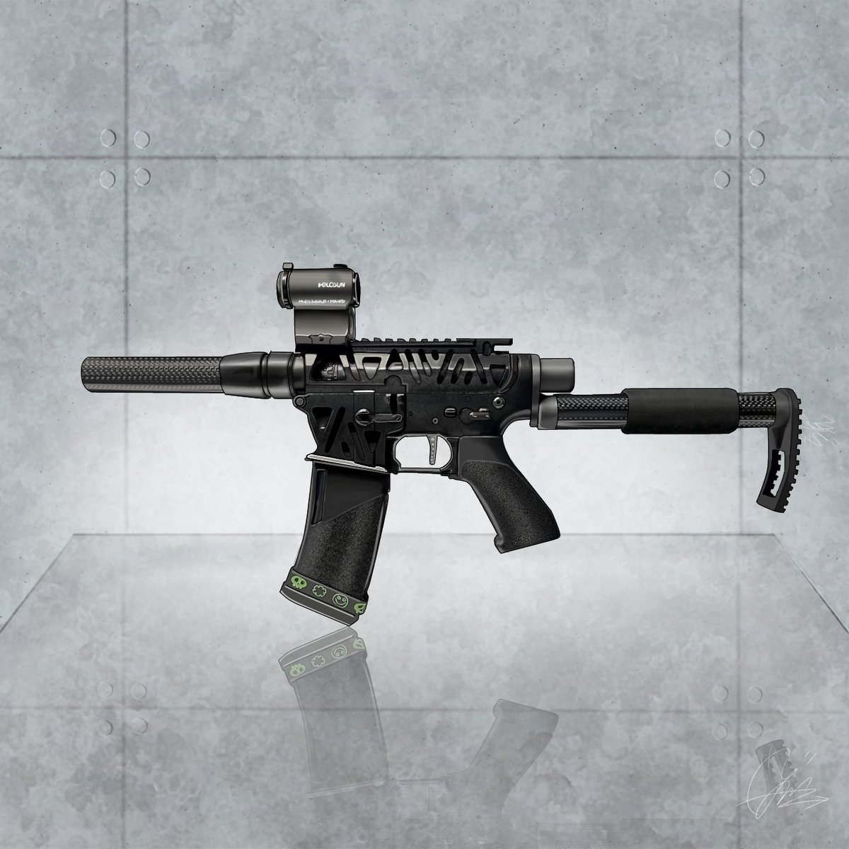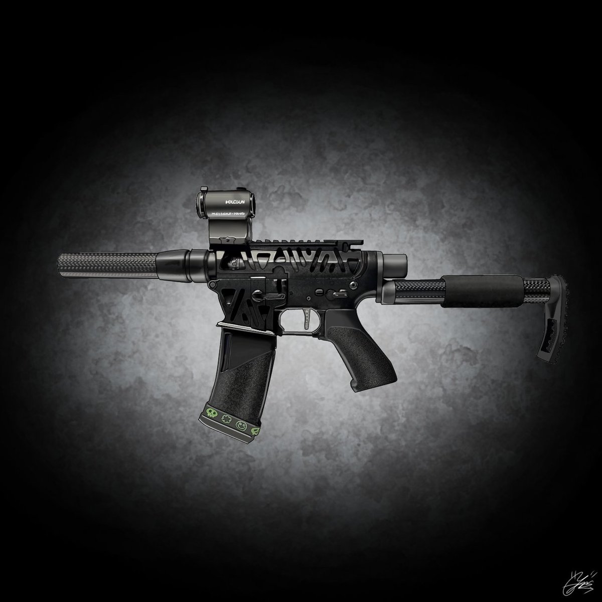 Banさん(@ban_airsoft)の銃 描かせていただきました!! ゆりなさん銃を描くのは初めてだったけん喜んでいただけて何よりです🙏🙏 値段は安いとは言えませんが デフォルメからリアルな物まで 何でも描きます🥹!! サバゲーマーの皆様からのご依頼 お待ちしております🥰🥰笑