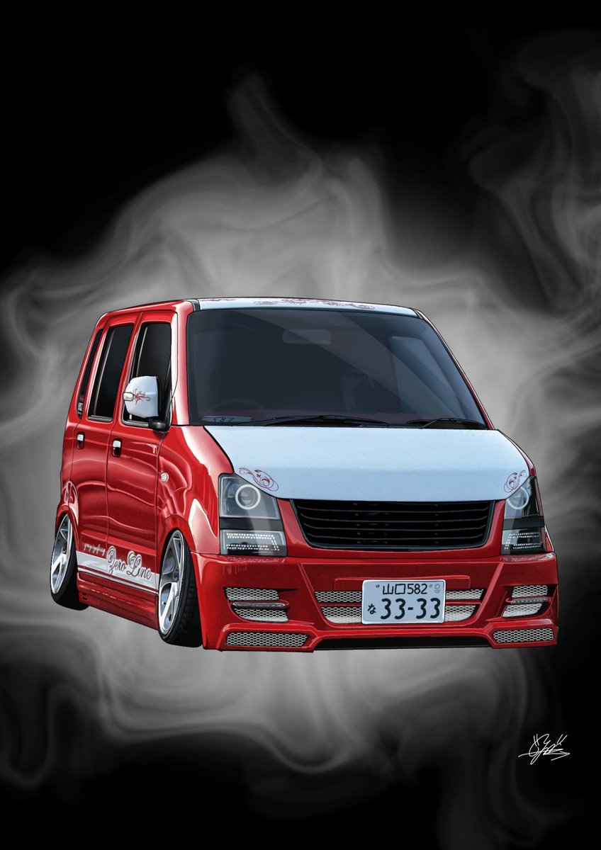 Kさん(@18MJTRED)のばちくそかっこいいお車描かせて頂きました! 大変お待たせして申し訳ありません🙇♀️ 現在左目失明寸前ですがなんとか描けるので ご依頼されてる皆様の絵は少しづつですが進めていきます🙇♀️
