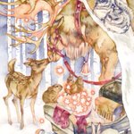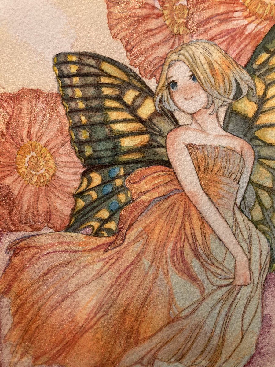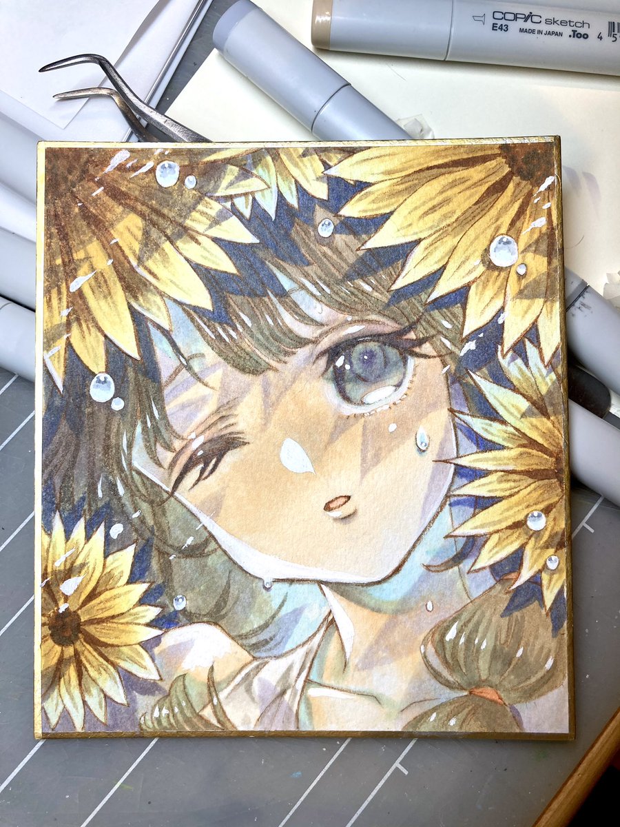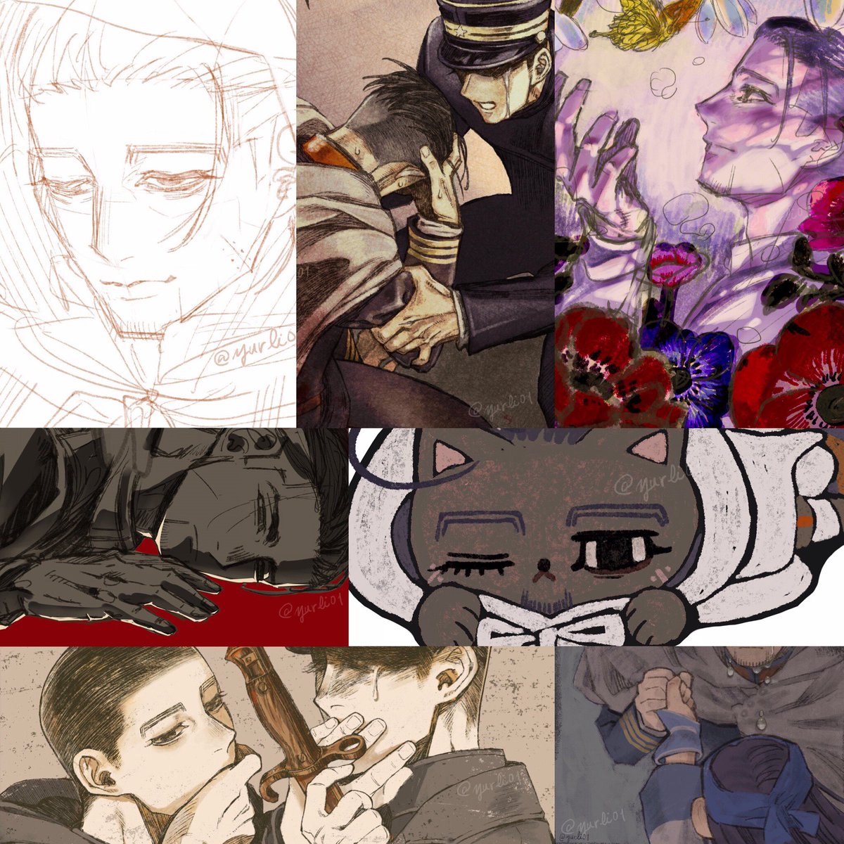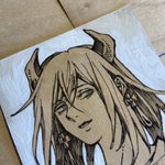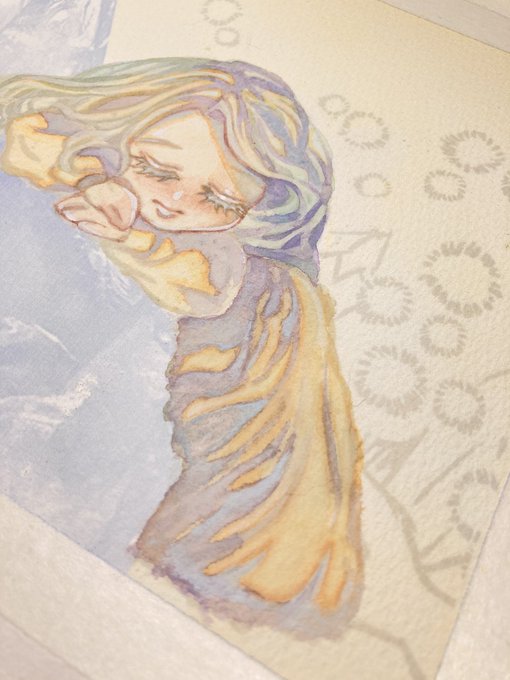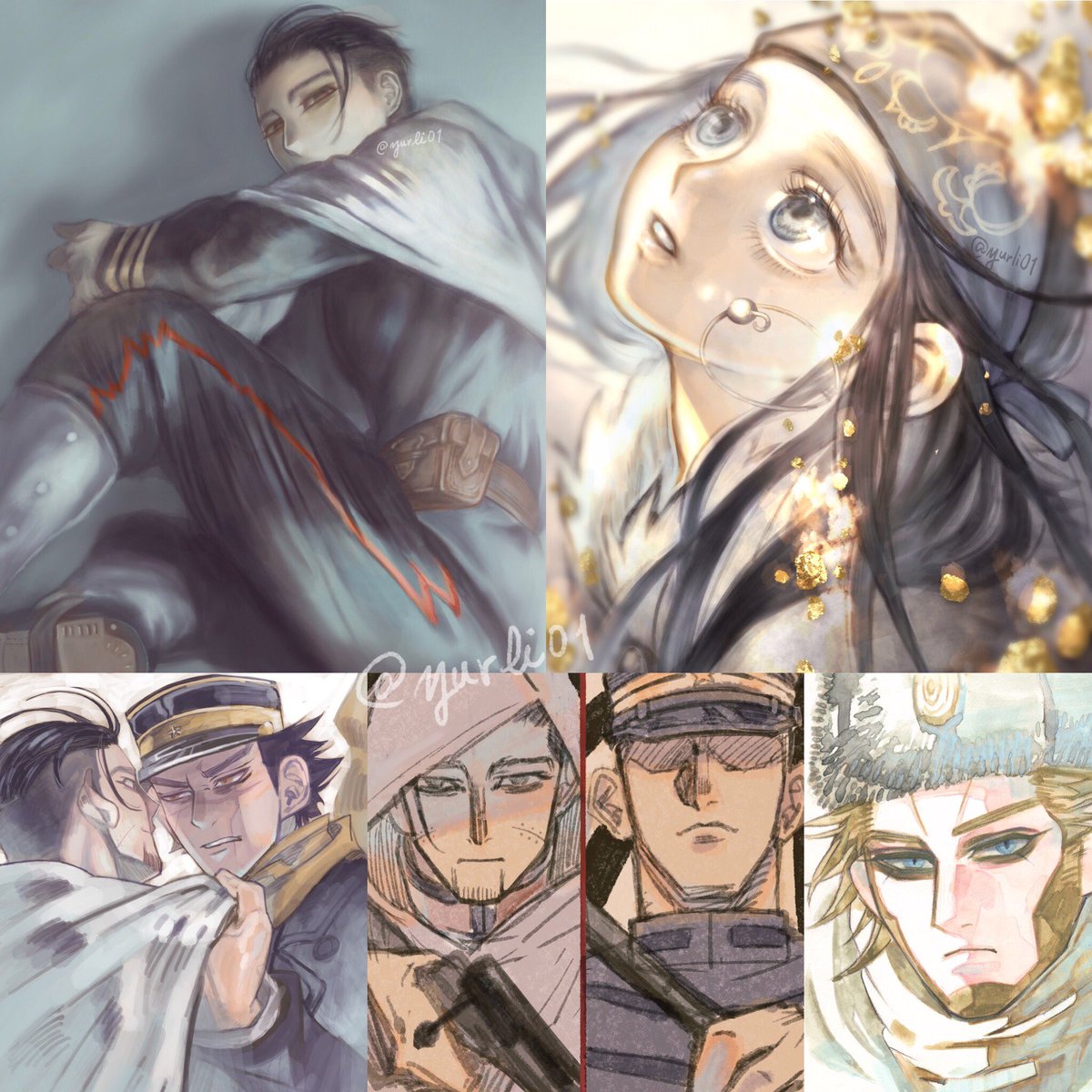#金カムアナログイラスト部 今日は尾形の誕生日㊗️ ゴールデンカムイはいいよ! ①マスキングと下塗り ②固有色塗り ③マスキングテープ剥がしてハイライト入れて完成✨ ④スキャンして原画の良さが半減 紙…ウォーターフォード