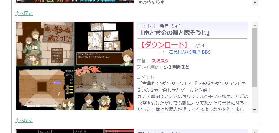 第13回ウディコン、「竜と黄金の梨と蔵そうじ」58番エントリー中!みんな遊んでみてね~ 古典的3Dダンジョン+不思議のダンジョンの2つの要素が楽しめる内容となっております silversecond.com/WolfRPGEditor/…