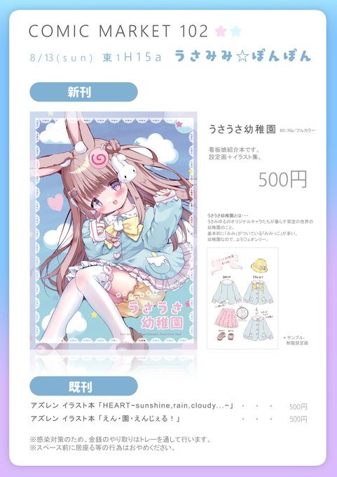 あなたのサークル「うさみみぽんぽん」は、コミックマーケット102で「日曜日 東地区 “H” ブロック 15a」に配置されました! 完全に退路を断たれました…!やるしかない🥺 そしてお隣と後ろの方が…!(((﹡•﹏•﹡)))プルプル webcatalog.circle.ms/Circle/Map/173… #C102WebCatalog