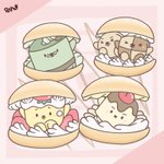 6 51 7月20日は #ハンバーガーの日 🍔 まあたん達がスイーツバーガーになりました🍓全4種類です🍪🍮 #ゆるかわケーキ #ゆるいイラスト 23/07/20 06:49