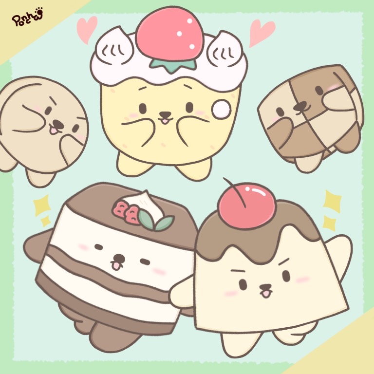 毎月25日は #プリンの日 🍮 今日はぺんちゃあ主役で🍮みんなでプリン味になりました🍰🍪✨ #イラスト #ゆるかわ #ケーキ #ゆるいイラスト
