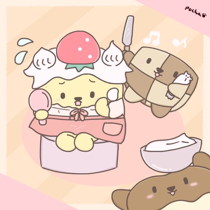 5 104 今日は #春分の日 🌸 まあたんが🍓みんなに🍪🍮ぼたもち作ってくれます🍡🍵 #イラスト #ゆるかわ #ケーキ #ゆるいイラスト 23/03/21 16:46