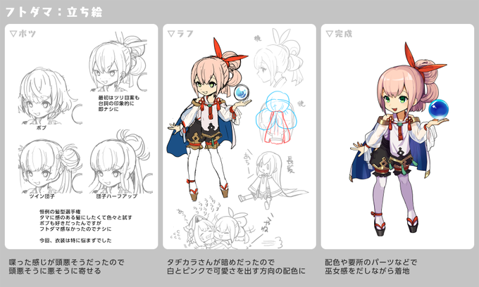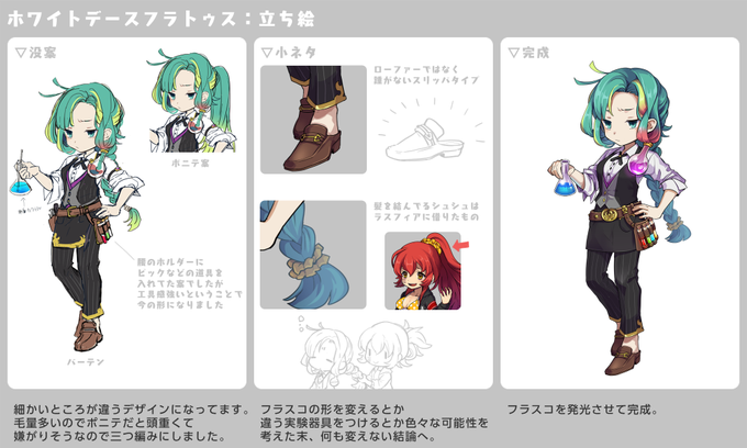 【ゆるゆる裏情報】キャラデザ編おまけ 普段は倭の特殊部隊所属どうし仲の良い(?)凸凹コンビですぞ! 悪者役を演じる為の邪神モードは意外とアナログな作りだったのですな… #ゆるドラ