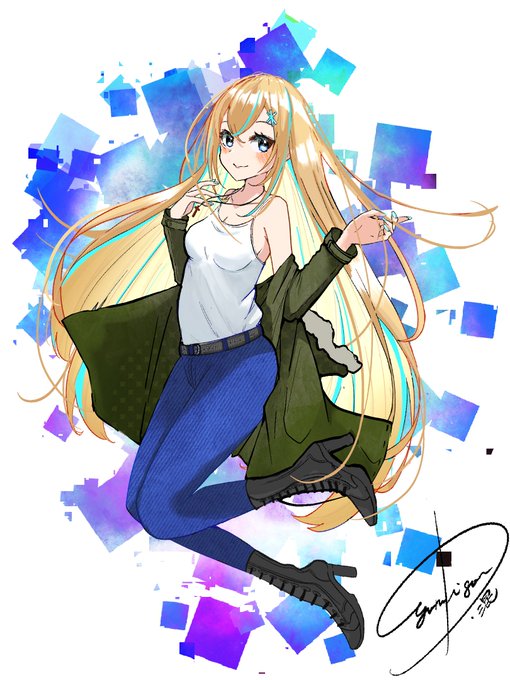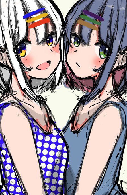 #イラスト ココ最近の絵は自分の絵のリサイクル♻作品です🟦
