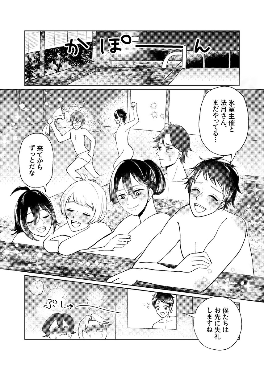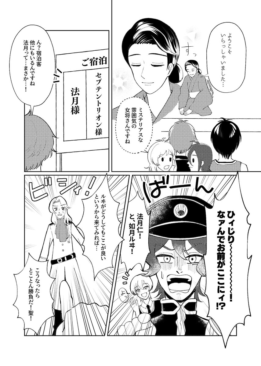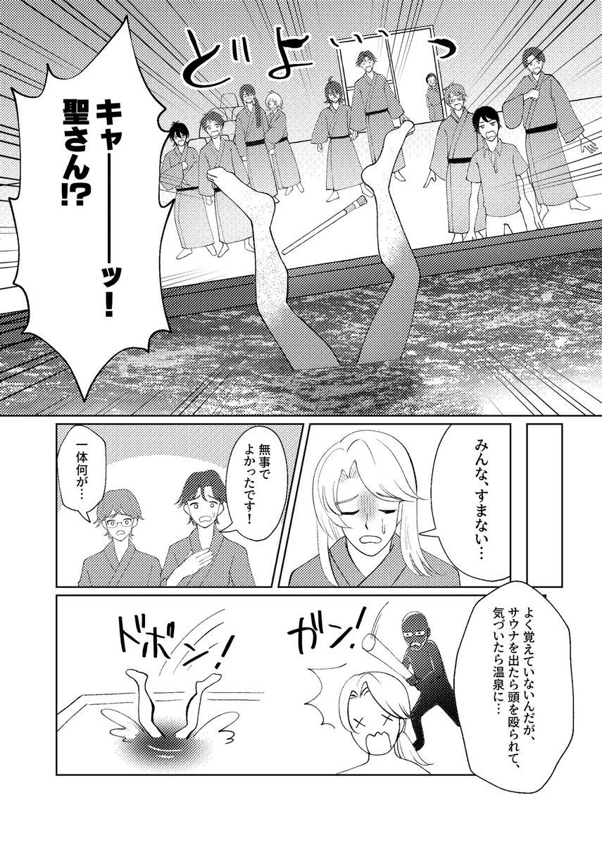 【新刊サンプル】2/3 オールキャラギャグ・ミステリー 聖が温泉で殺人未遂にあい、仁が容疑を受けるギャグ&ミステリー漫画です! 6/7のエアブーで頒布します! 通販:twinkrium.booth.pm/items/2112605