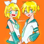 18 64 #鏡音版深夜のお絵描き60分1本勝負 お題「ウインク」 🍌「リン、ウインクできる?」 🍊「んむむ…っ!」 開始時間遅刻した上に投稿時間も遅刻したー!!!! 20/09/10 23:20