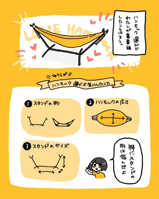 3 16 わたしがハンモック選びで気にした3つのこと(1/2) #漫画が読めるハッシュタグ #ゆるいイラスト #エッセイ漫画 #ハンモック #susabi 21/06/16 19:33