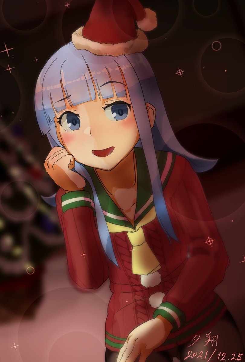 113 309 "さすがにこの格好も七年目よ?…今年も楽しいわね。" ―――聖夜の装いも七年目、いたずらな表情で微笑みかける初風。零時を過ぎ夜が更けていく。いつものように夜更かしを咎めず苦楽の日々を懐かしむ。普段見せることのない表情を見せる初風から目を離せない。今宵の楽しい語らいはまだまだ続きそうだ。 21/12/25 09:09