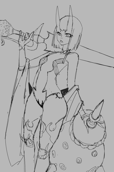 #描き途中 #イラスト #FGO #酒呑童子 最近は練習していますが、今夜はこの新しい描画スタイルをテストしたいと思います。I have been practicing lately, tonight i want to test this new drawing style.