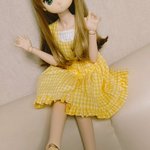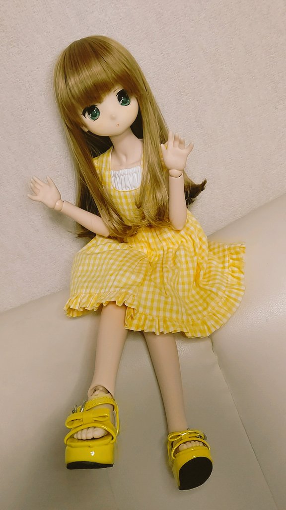 #今夜のドール撮影120分一本勝負 【カラーイメージきいろ】 黄色いチェックのワンピに、黄色いサンダルがピッタリ似合う美桜ちゃん(≧∇≦)/ 美桜「ヒマワリ少女♥なんてね(o´艸`)」 #うちのこかわいい #ドルチェドール