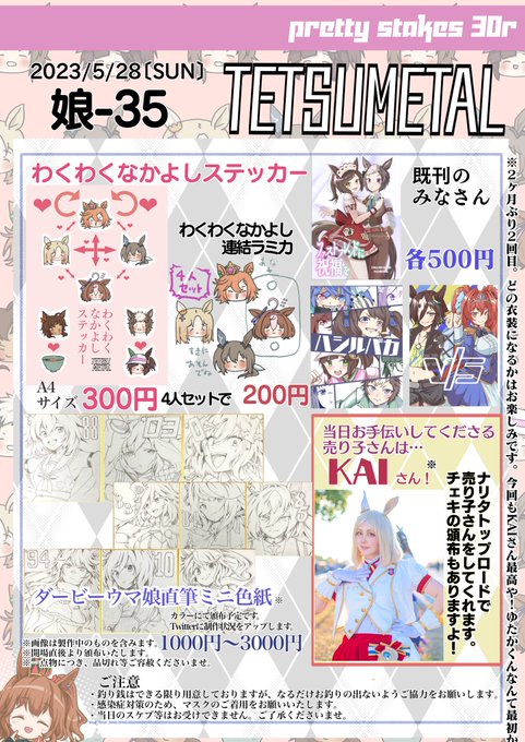 プリステ30R明日になりました!! ダービーウマ娘色紙、累計17枚を明日頒布します。 娘35でKAIさんトップロードとお待ちしております、よろしくお願いします! twitter.com/yutaka_tukiji/…