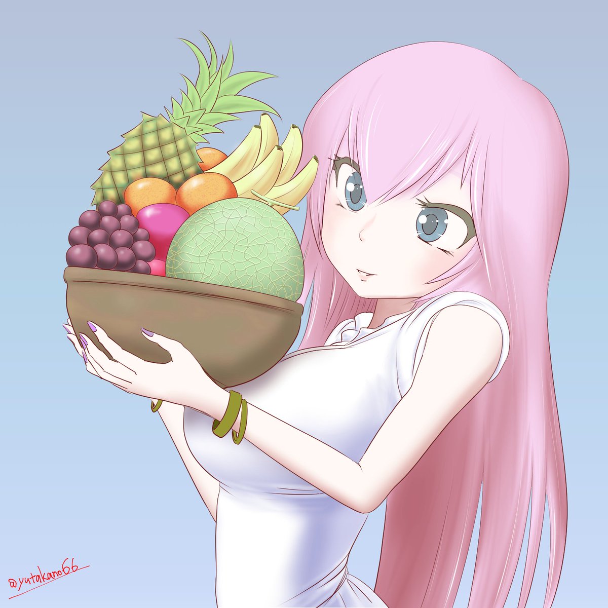 お題は「果物」。 どれにしようかな、 全部美味しそうなので 全部いただくルカさん。 #巡音ルカお絵かき一本勝負