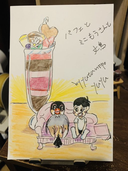 0 9 パフェと文鳥とみにもうさん💮♥️♥️ #もう中学生 #似顔絵 #イラスト #文鳥 #アナログ 22/08/18 18:31