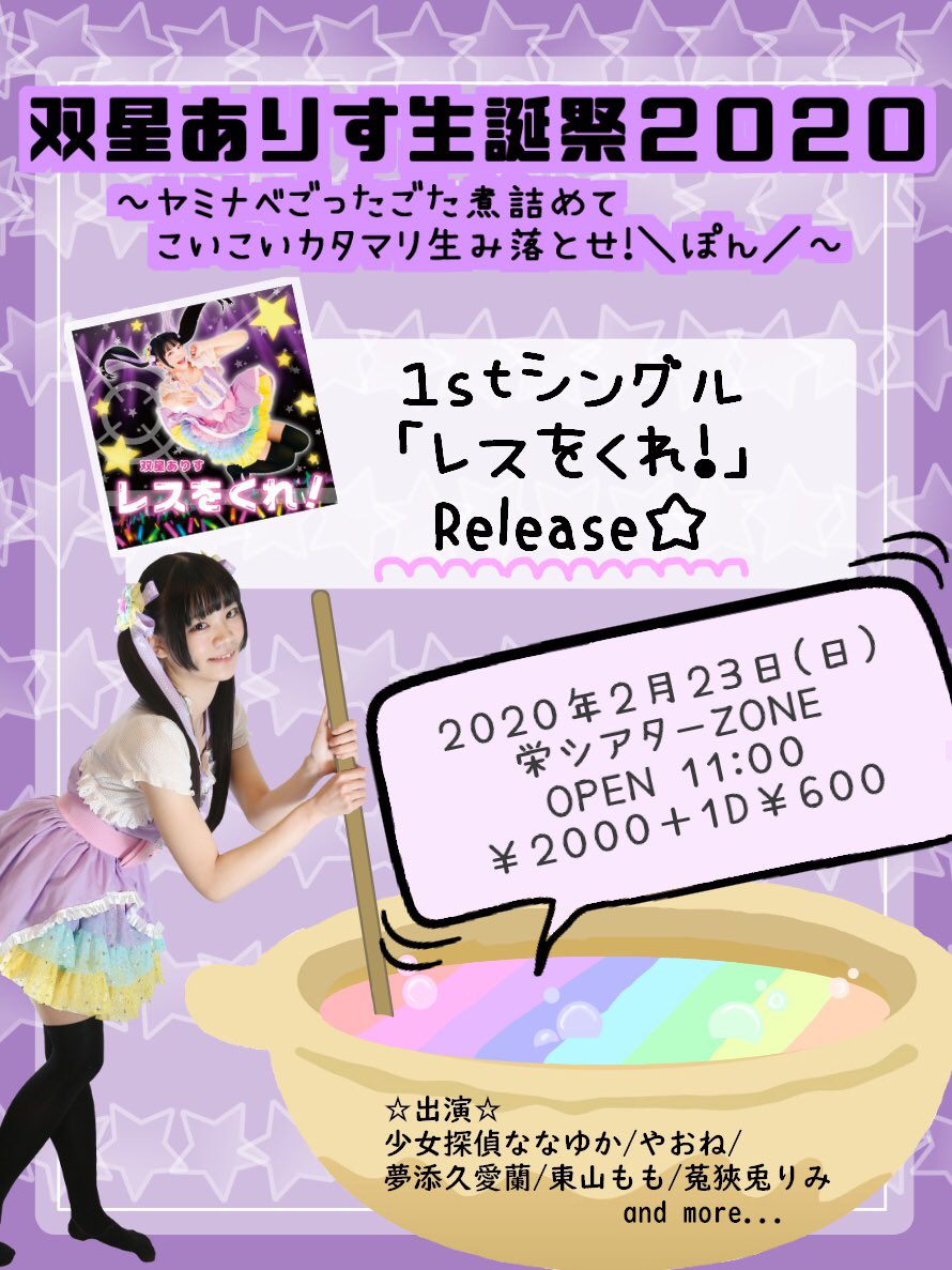 2月23日(日祝) 双星ありす生誕祭2020〜ヤミナベごったごた煮詰めてこいこいカタマリ生み落とせ!\ぽん/〜 | イベント情報、予約購入はこちら tiget.net/events/82803 #TIGET