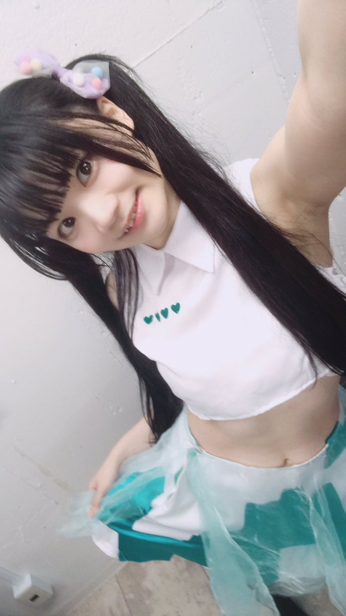 #みどりの日なので緑色の画像を貼る ってわけで、生誕祭の時にみどりの子と衣装交換した時の写真(。Ő▽Ő。)ノ ほらほら… ありちゃんのすーぱーレアなおへそ写真ですのよ?(๑¯◡¯๑)💕 #みどりの日