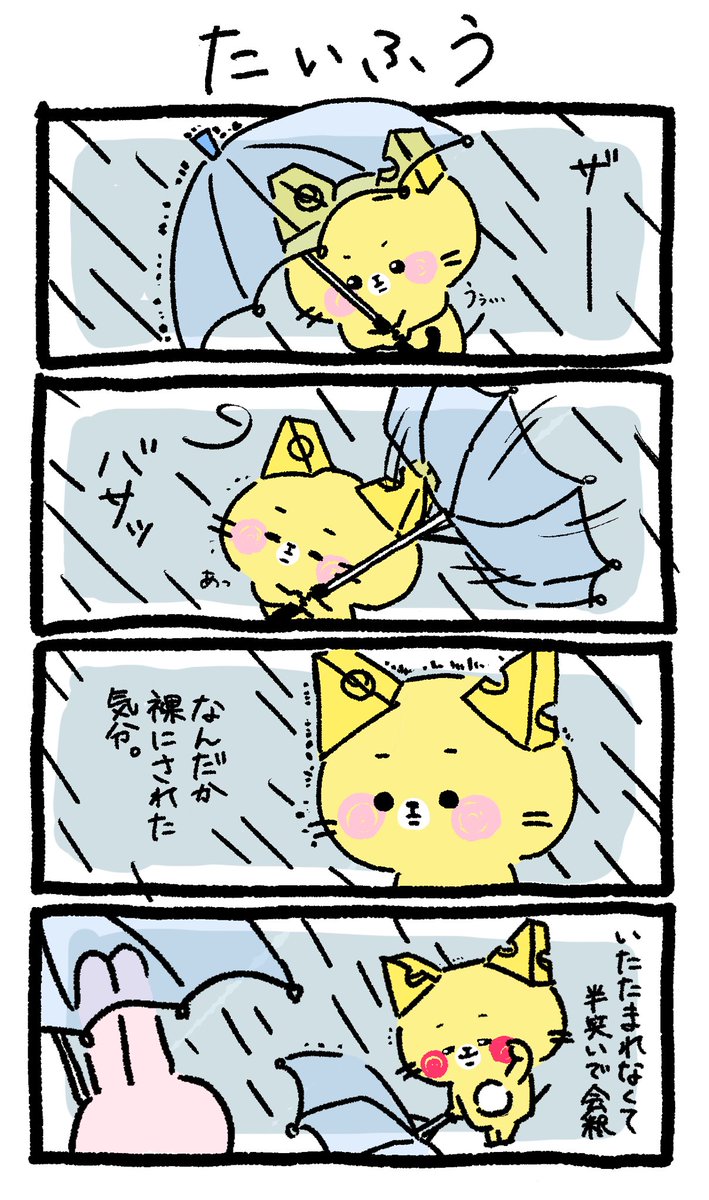 外出た瞬間終わったわ 台風来てるから進めない #強風オールバック #ジャパニーズショートヘア #イラスト #illustration #ゆるいイラスト #ねこ