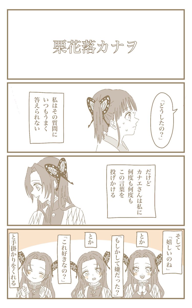 206 823 「こころ」 栗花落カナヲちゃんのお話を描きました。 pixiv↓ pixiv.net/artworks/95724… 22/01/23 20:13