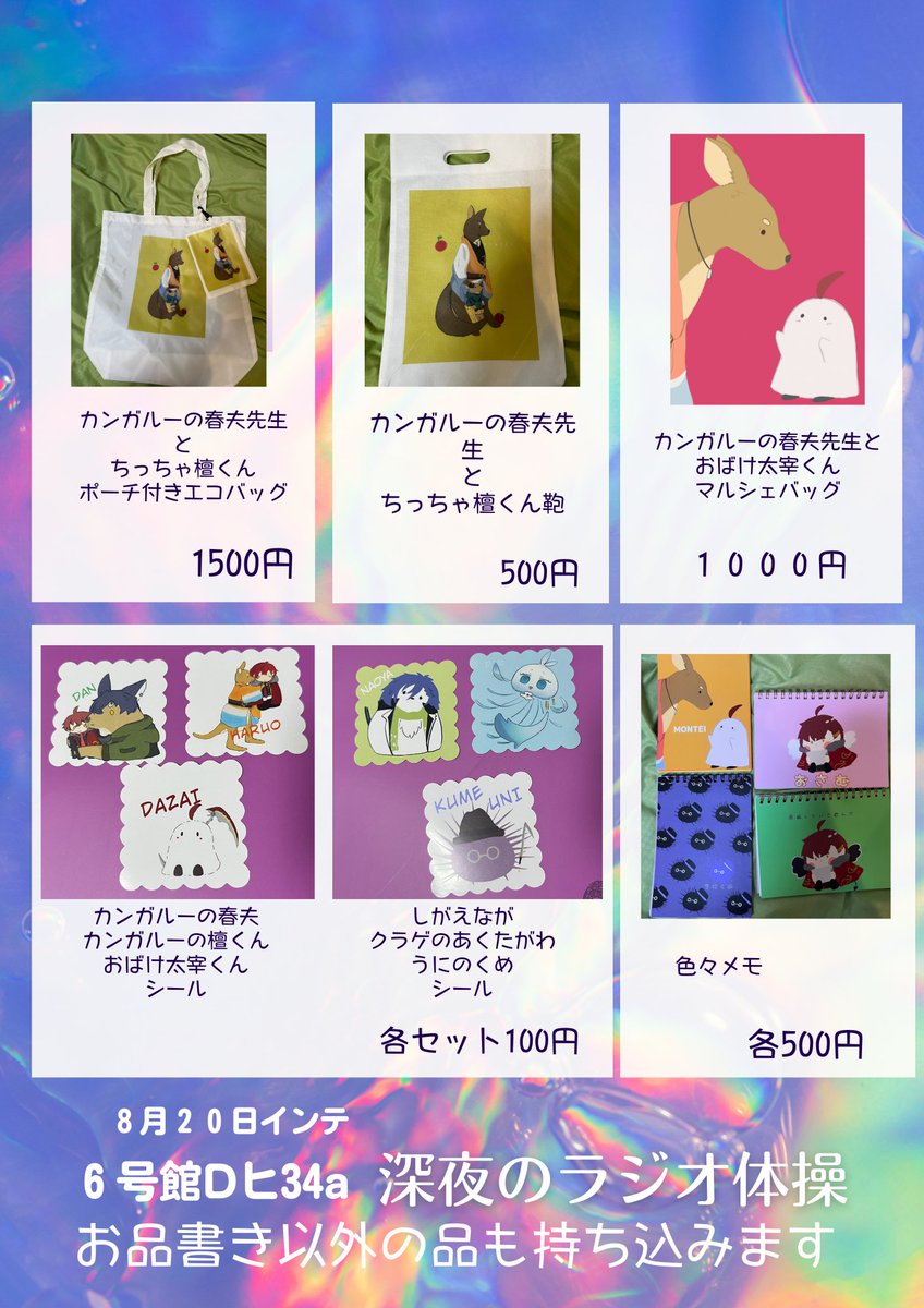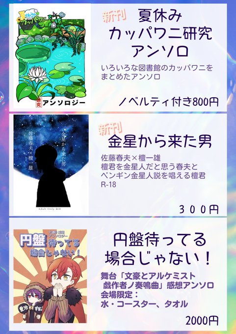 22 19 8月20日インテお品書きです!!! はるだん、かっぱわに研究アンソロがあります!! 6号館Dヒ34a 23/08/18 23:24